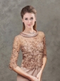 Exclusive See Through Half Sleeves Chocolate Evening Dress with Lace