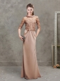 Home >  Evening Dresses > Exclusive See Through Half Sleeves Chocolate Evening Dress with Lace