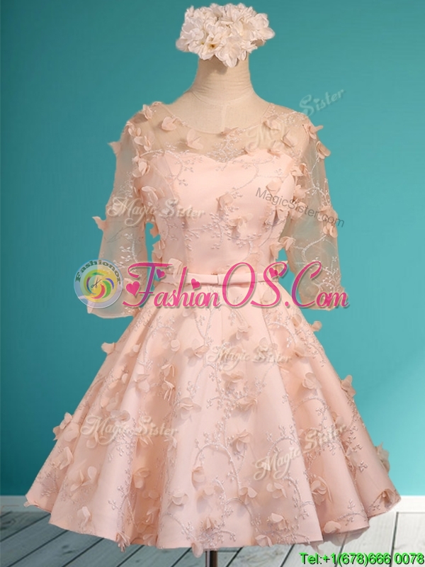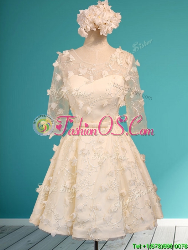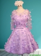 Home >  Special Occasion Dresses >  Cheap Dama Dresses > Exclusive See Through Scoop Half Sleeves Dama Dress with Appliques and Belt
