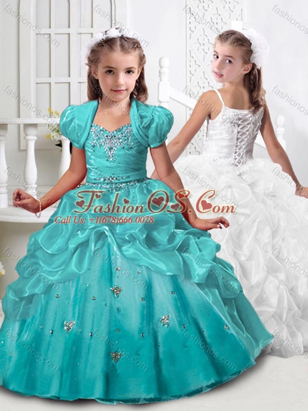 Home >  Special Occasion Dresses >  New Style Little Girl Pageant Dresses > Exclusive Spaghetti Straps Mini Quinceanera Dress with Beading and Pick Ups