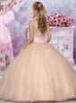 Home >  Quinceanera Dresses >  Popular Quinceanera Dresses > Exclusive Strapless Beaded Champagne Quinceanera Dress in Tulle