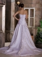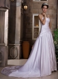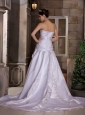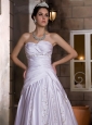 Exclusive and marvelous. This taffeta wedding gown has a favorable sweetheart neckline. A line of delicate embroidery is accented under the bust. Ruched bodice is a lightpoint of the pretty dress. similar elaborate embroideries adorn throughout the skirt to create an vintage look.The sweep train moves so elegantly when you walk. A hidden zipper closure completes the whole look.