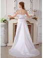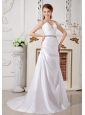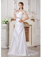 Exclusive Wedding Dress A-line V-neck Beading Brush Train Satin