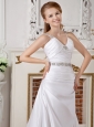 Looking for a beautiful and special dress for your big day? This dress is the perfect choice. The elegant V-neck on the ruched bodice and an fitted waist will draw all the attention to your beautiful face and shoulders.The fitted waist is embellished by a heavily decorated waistband, so are the two beautiful straps and the middle bust. The hidden zipper closure allows easy off and on and secures the dress in place.