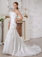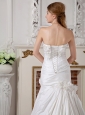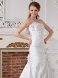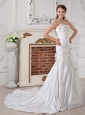 Exclusive Wedding Dress Column Strapless Hand Made Flowers Court Train Taffeta