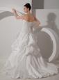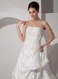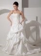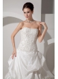 Exquisite A-line Strapless Wedding Dress Court Train Taffeta Appliques