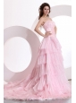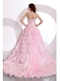Exquisite A-line Sweetheart Court Train Ruching Pink Prom Dress
