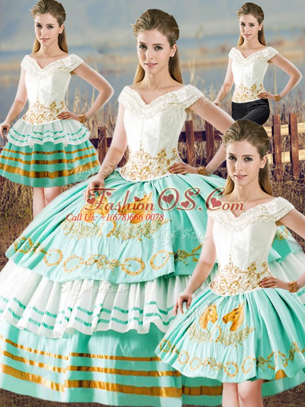 Home >  Quinceanera Dresses >  Detachable Quinceanera Skirts > Exquisite Apple Green Sweet 16 Dress Sweet 16 and Quinceanera with Embroidery and Ruffled Layers V-neck Sleeveless Lace Up