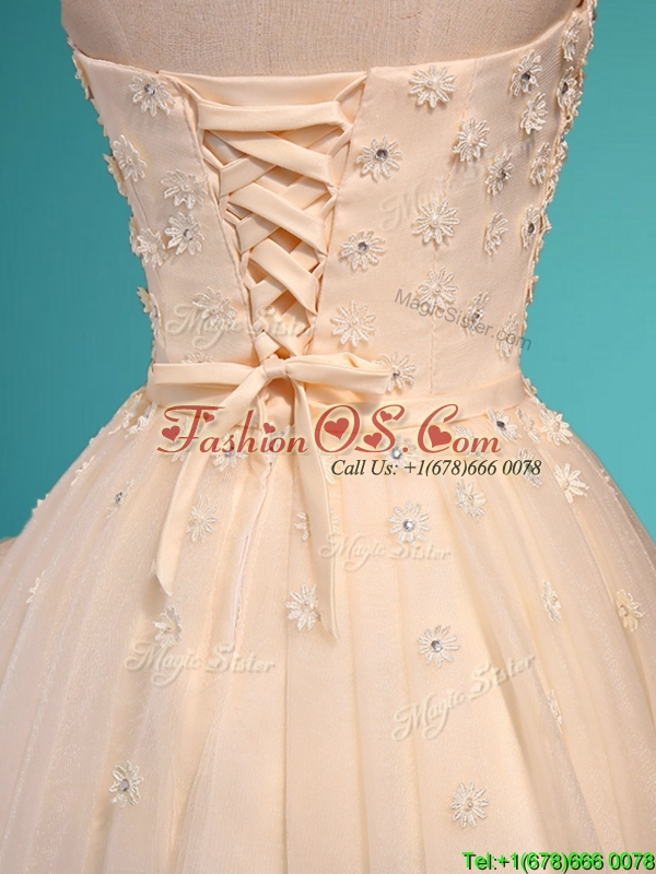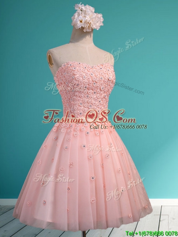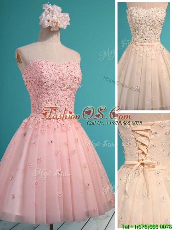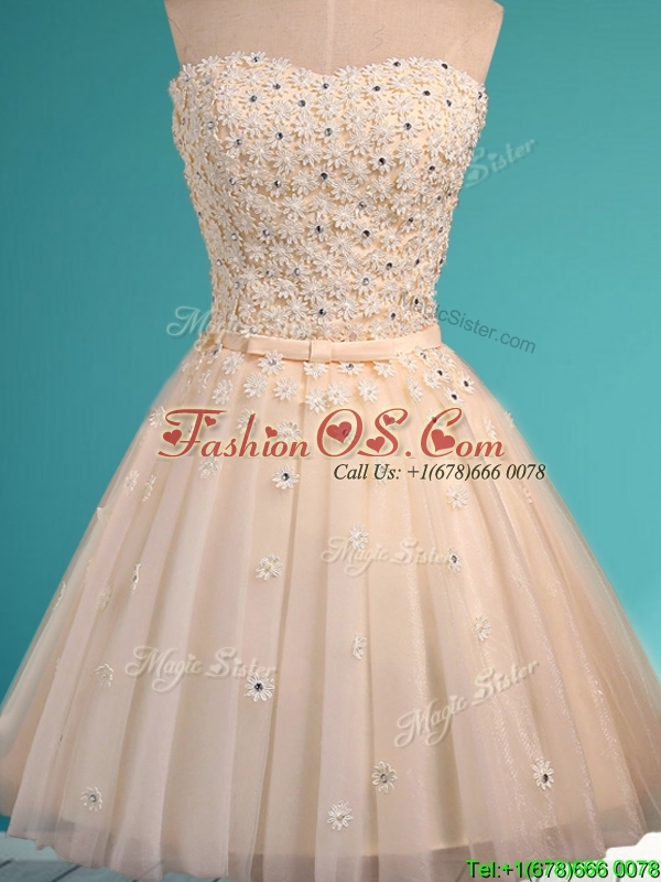 Home >  Special Occasion Dresses >  Cheap Dama Dresses > Exquisite Applique and Beaded Sweetheart Dama Dress in Mini Length
