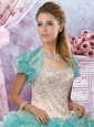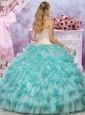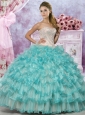 Exquisite Applique and Ruffled Quinceanera Dress in Champagne and Aqua Blue