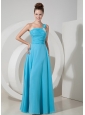Exquisite Aqua Blue One Shoulder Chiffon Prom Dress