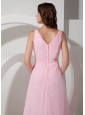 Exquisite Baby Pink Empire V-neck Beading Prom Dress Brush Train Chiffon