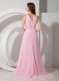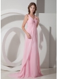 Home >  Prom Dresses >  Cheap Prom Dresses > Exquisite Baby Pink Empire V-neck Beading Prom Dress Brush Train Chiffon