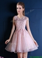 Exquisite Baby Pink Scoop Prom Dress with Appliques and Beading
