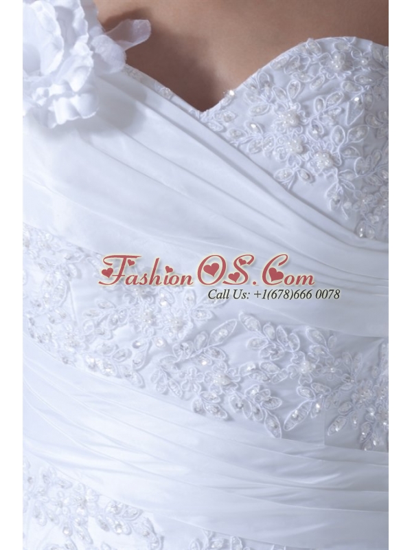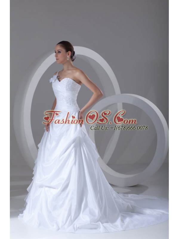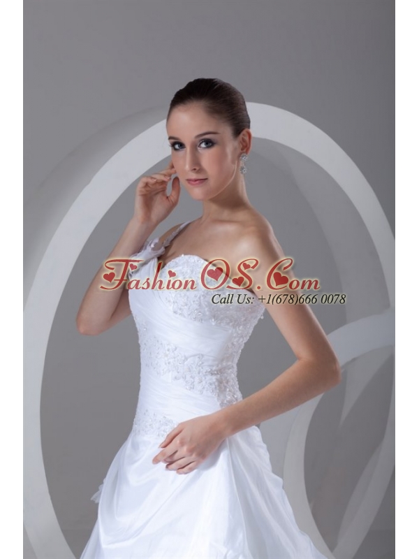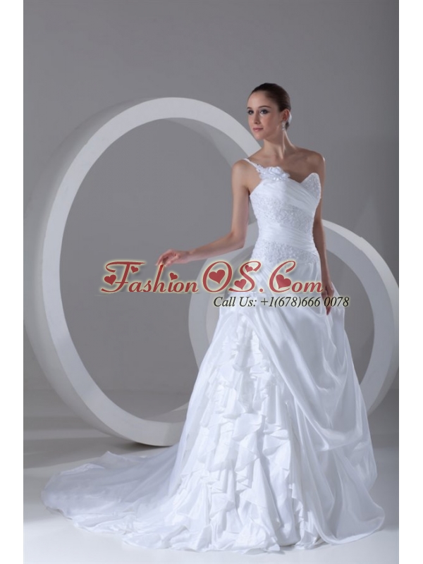 Home >  Wedding Dresses >  Perfect Wedding Dresses > Exquisite Ball Gown One Shoulder Court Train Lace Taffeta Wedding Dress