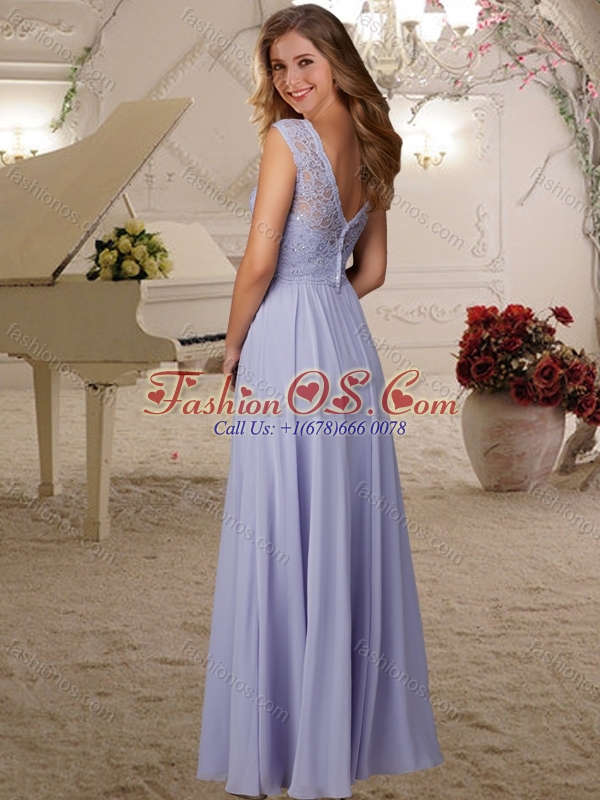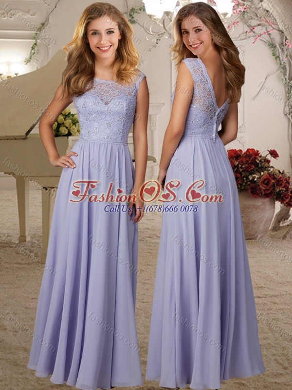Exquisite Beaded and Laced Lavender Cheap Dama Dress with Backless
