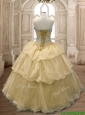 Exquisite Beaded and Ruffled Organza Sweet 16 Dress in Champagne
