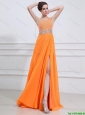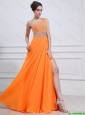 Exquisite Beading and High Slit Orange Prom Dresses with Brush Train 2016