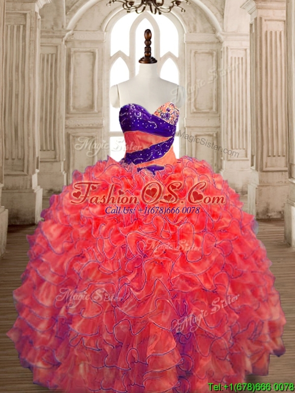 Exquisite Big Puffy Beaded and Ruffled Quinceanera Dress in Orange Red