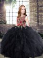 Exquisite Black Tulle Zipper Scoop Sleeveless Floor Length Girls Pageant Dresses Embroidery and Ruffles