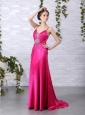 Home >  Prom Dresses >  Plus Size Prom Dresses > Exquisite Brush Train 2015 Plus Size Prom Dress with Ruching and Beading