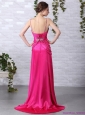 Exquisite Brush Train 2015 Plus Size Prom Dress with Ruching and Beading