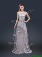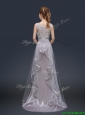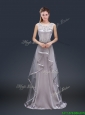 Exquisite Brush Train Scoop Modest Prom Dresses with Appliques