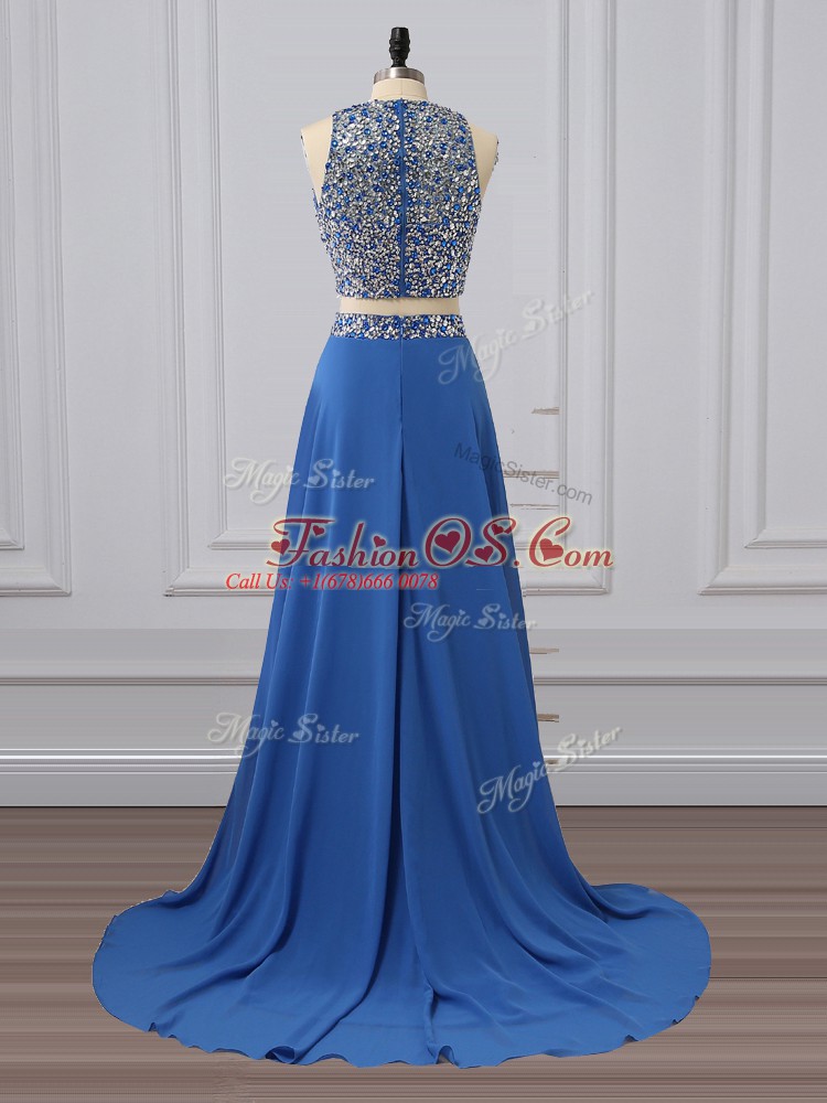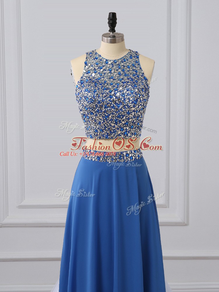 Exquisite Chiffon Sleeveless Floor Length Prom Gown and Beading and Sequins