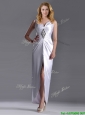 Exquisite Column V Neck Mother of the Bride Dress with Beading and High Slit