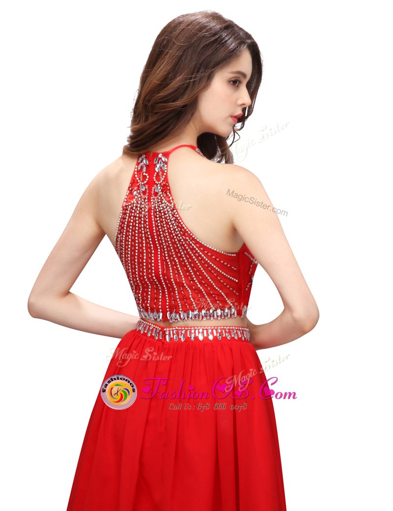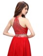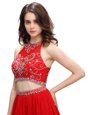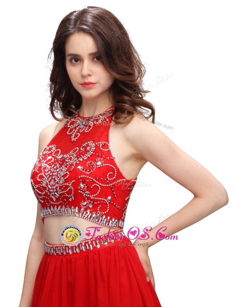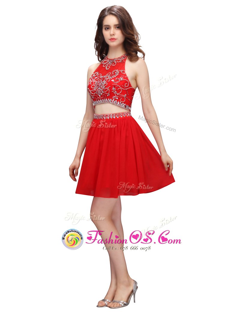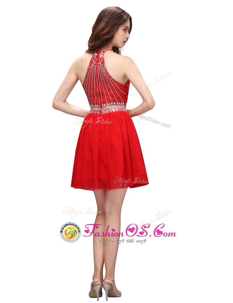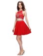 Exquisite Coral Red Zipper Junior Homecoming Dress Beading and Appliques Sleeveless Knee Length