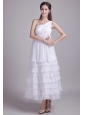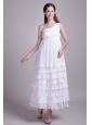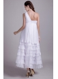 Exquisite Empire One Shoulder Ankle-length Chiffon Ruffles Beach Wedding Dress