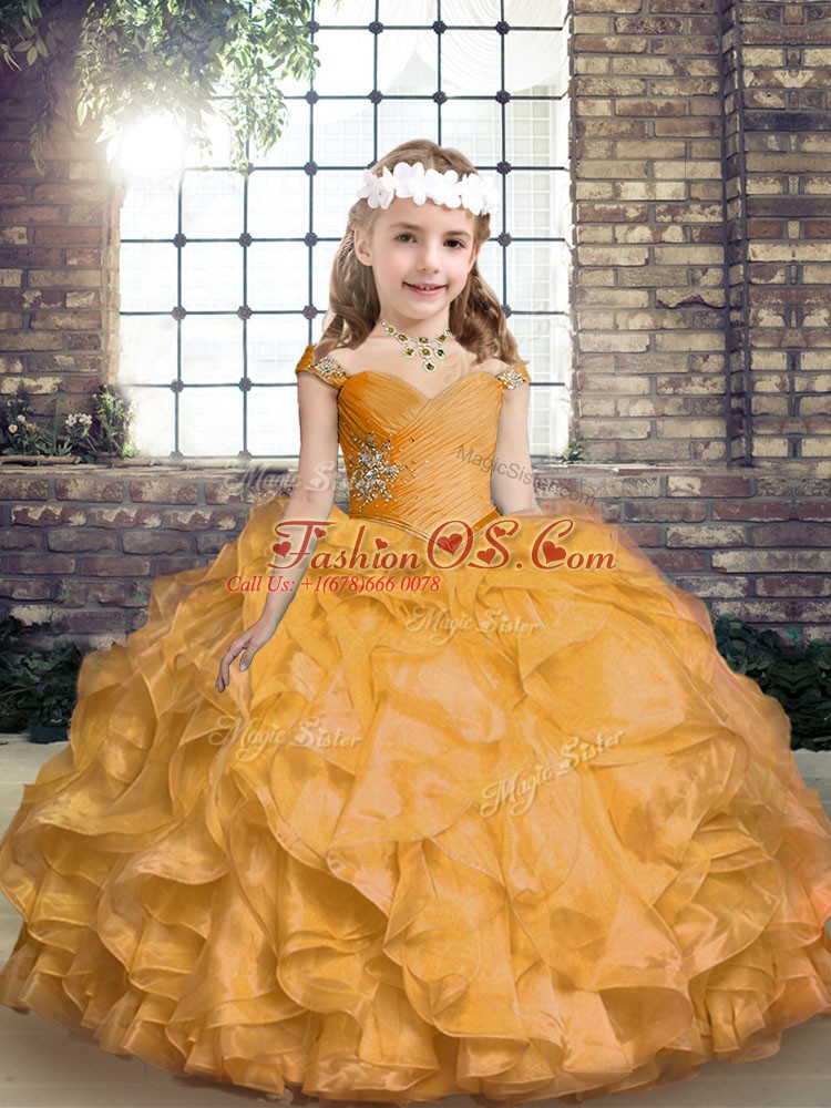 Home >  Special Occasion Dresses >  Beautiful Kids Pageant Dresses > Exquisite Floor Length Lace Up Pageant Dress for Womens Gold for Party and Wedding Party with Beading and Ruffles