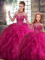 Exquisite Fuchsia Quinceanera Gowns Military Ball and Sweet 16 and Quinceanera with Beading and Ruffles Halter Top Sleeveless Lace Up