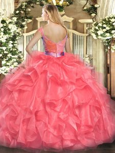 Exquisite Fuchsia V-neck Zipper Beading and Ruffles Sweet 16 Quinceanera Dress Sleeveless