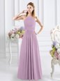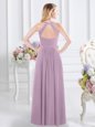 Exquisite Halter Top Sleeveless Chiffon Floor Length Zipper Quinceanera Court Dresses in Lavender for with Ruching