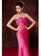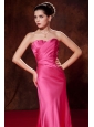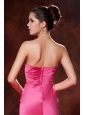 Exquisite Hot Pink Junior Prom Dress Mermaid Strapless Brush Train Satin Ruch