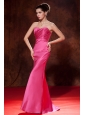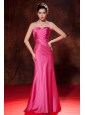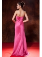 Difficultly hunting for a dress to showcase your perfect figure? Why not have a look at this dress? This slim line hot pink porm dress with a brush train whose neckline is styled in a sweetheart design with symmetrical pleats on one half of the gown; which grazes the bust line in a heart shape which is very stylish. The other half of the neckline sticking approciately into the "heart" shapes like a one quarter of flower pointing upwprd. You will easily win the "hearts" on your prom.