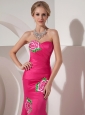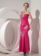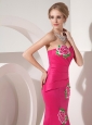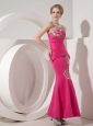 Exquisite Hot Pink Mermaid Sweetheart Cocktail Dress Taffeta Appliques Ankle-length