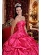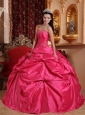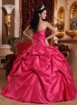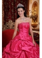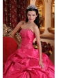 Exquisite Hot Pink Quinceanera Dress Strapless Taffeta Beading Ball Gown