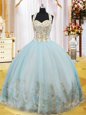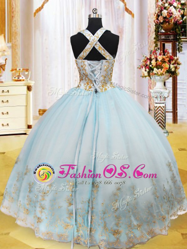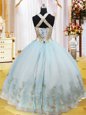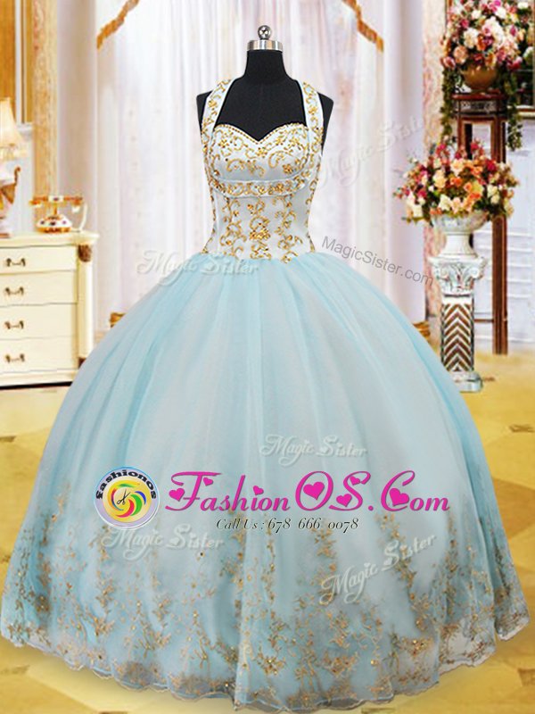 Exquisite Light Blue Lace Up Halter Top Appliques Sweet 16 Quinceanera Dress Organza Sleeveless