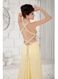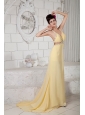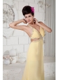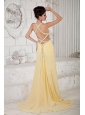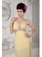 Home >  Evening Dresses > Exquisite Light Yellow Empire Evening Dress Straps Chiffon Beading Brush Train