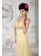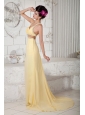 Exquisite Light Yellow Empire Evening Dress Straps Chiffon Beading Brush Train