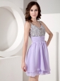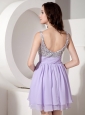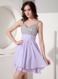 Exquisite Lilac Empire Strap Evening Dress Chiffon Beading Mini-length