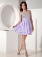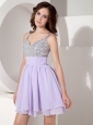 Home >  Evening Dresses > Exquisite Lilac Empire Strap Evening Dress Chiffon Beading Mini-length