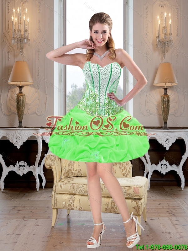 Exquisite Mini Length Beaded and Pick Ups Prom Dresses in Spring Green