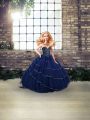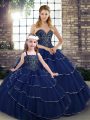 Exquisite Navy Blue Sleeveless Tulle Brush Train Lace Up Sweet 16 Dress for Military Ball and Sweet 16 and Quinceanera