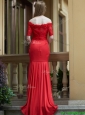 Exquisite Off the Shoulder Half Sleeves Prom Dresses  with Lace