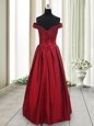 Exquisite Off the Shoulder Wine Red Sleeveless Taffeta Lace Up for Prom