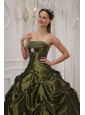 Home >  Quinceanera Dresses >  Discount Quinceanera Dresses > Exquisite Olive Green Quinceanera Dress Strapless Taffeta and Satin Beading Ball Gown