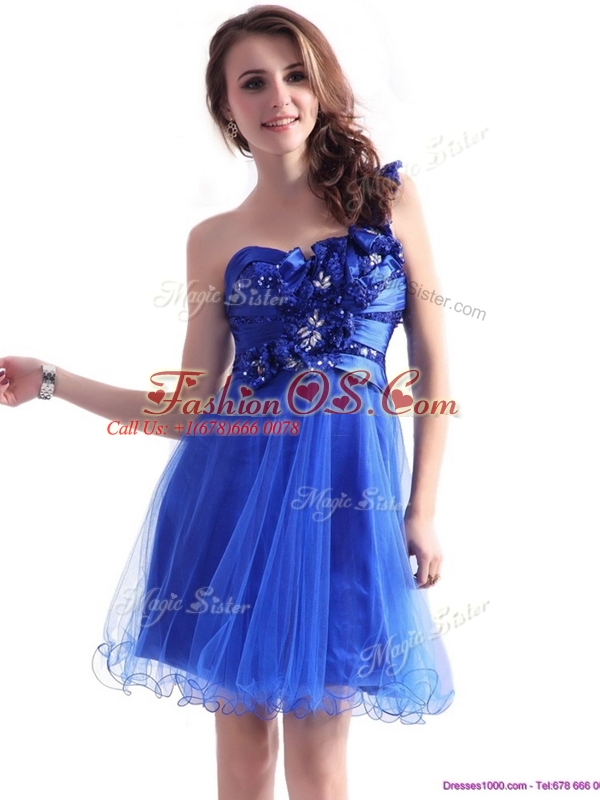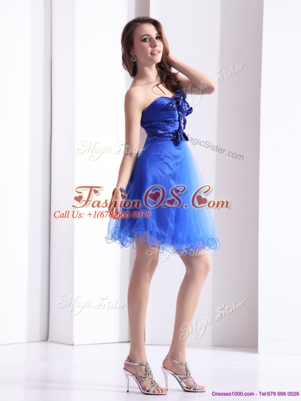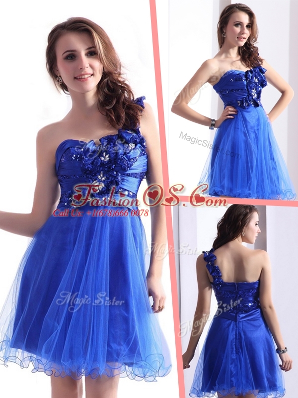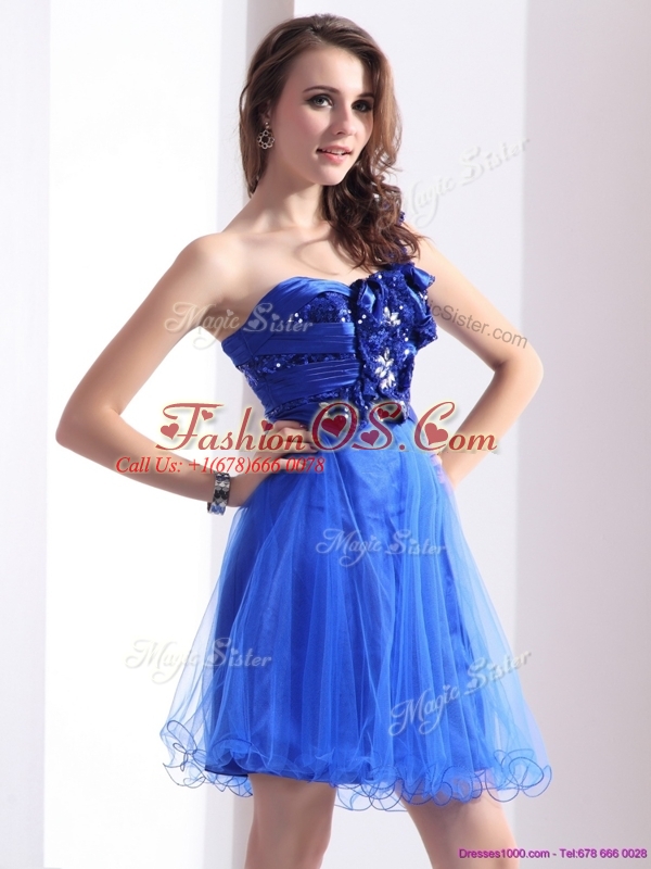 Exquisite One Shoulder Cocktail Dresses with Beading and Hand Made Flowers